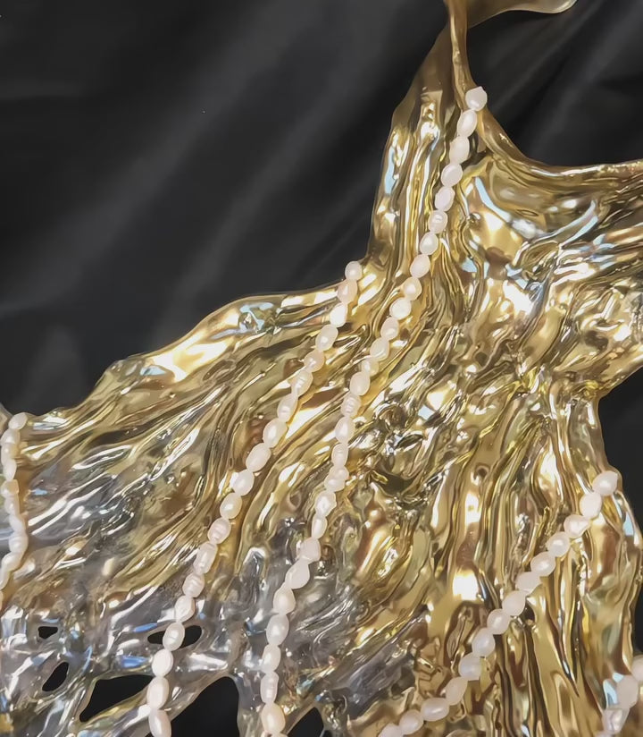 ZIWU ARTEMIS GILDED FLOWING SPRING WATER PEARLS RESIN TOP COSTUME PATENT-PROTECTED