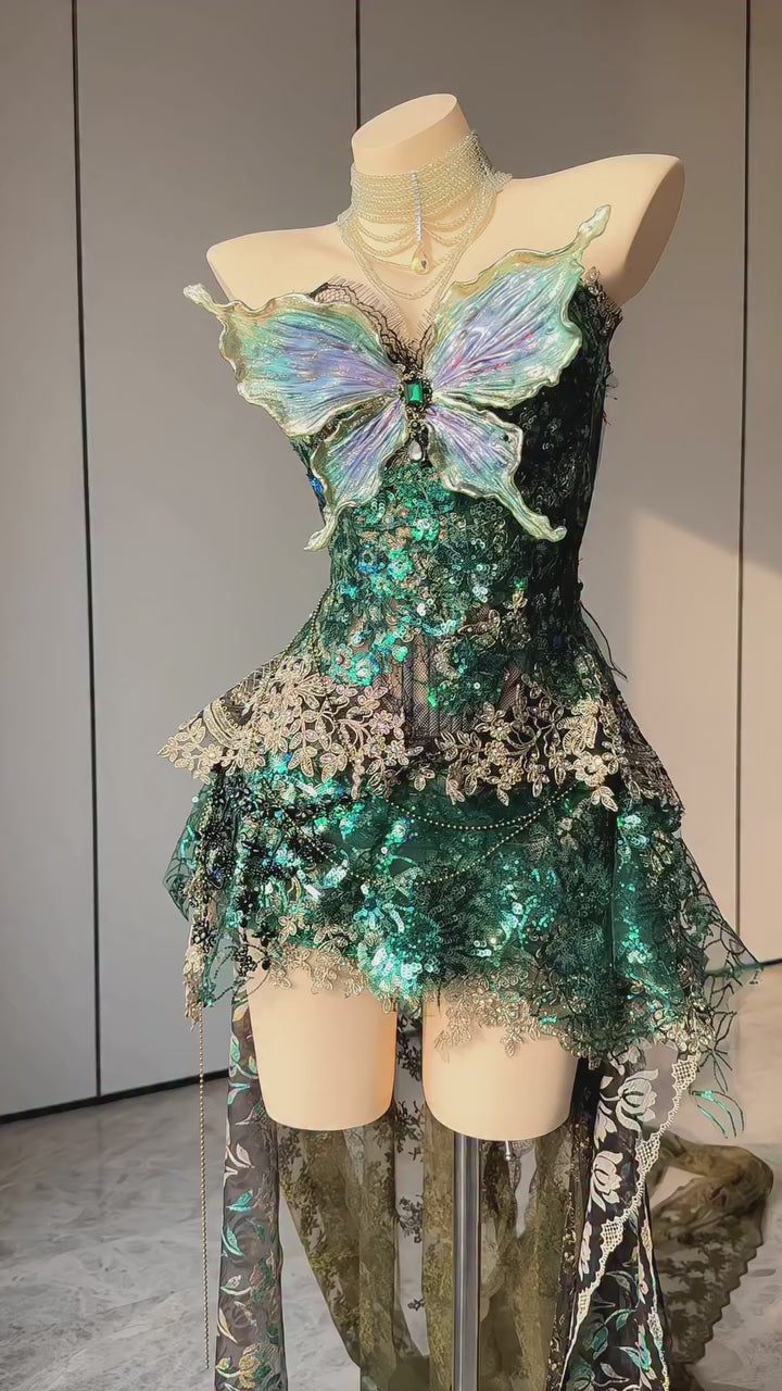 ZIWU ARTEMIS EMERALD HOLOGRAPHIC WING RESIN TOP COSTUME PATENT-PROTECTED