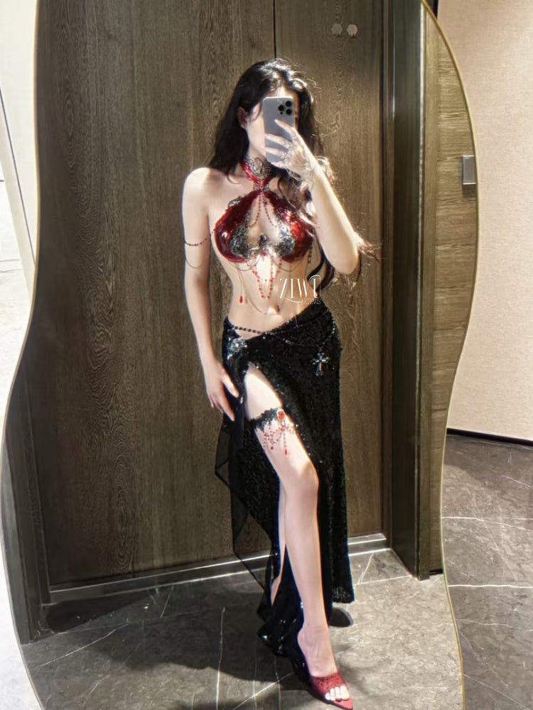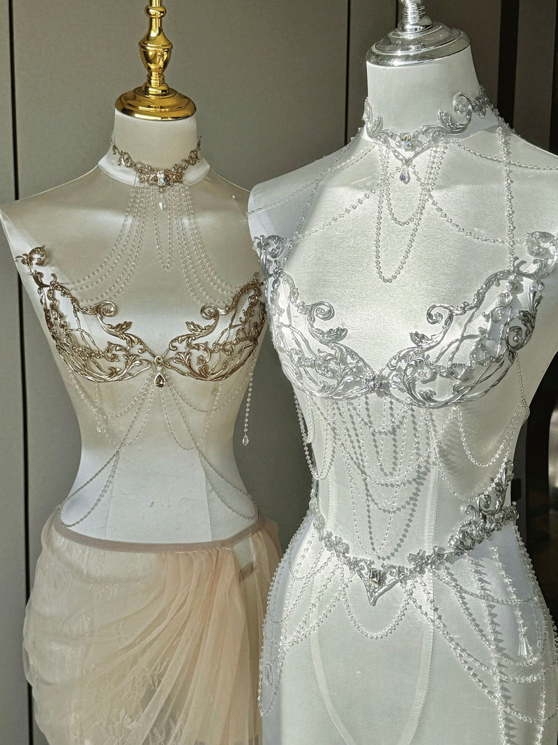 ZIWU ARTEMIS DANSEUSE WHOLE-BODY PEARL BOW DIAMOND CHAIN CORSET BRA TOP COSTUME PATENT-PROTECTED