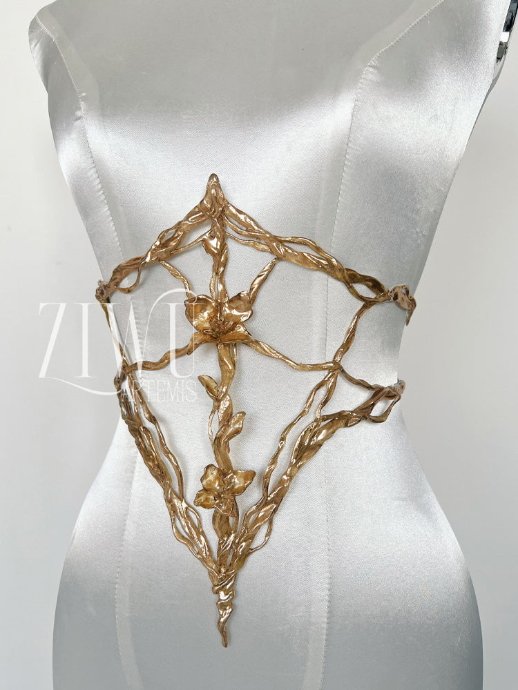 ZIWU ARTEMIS BAROQUE WAISTBAND GOLD RESIN CORSET BRA TOP COSTUME PATENT-PROTECTED