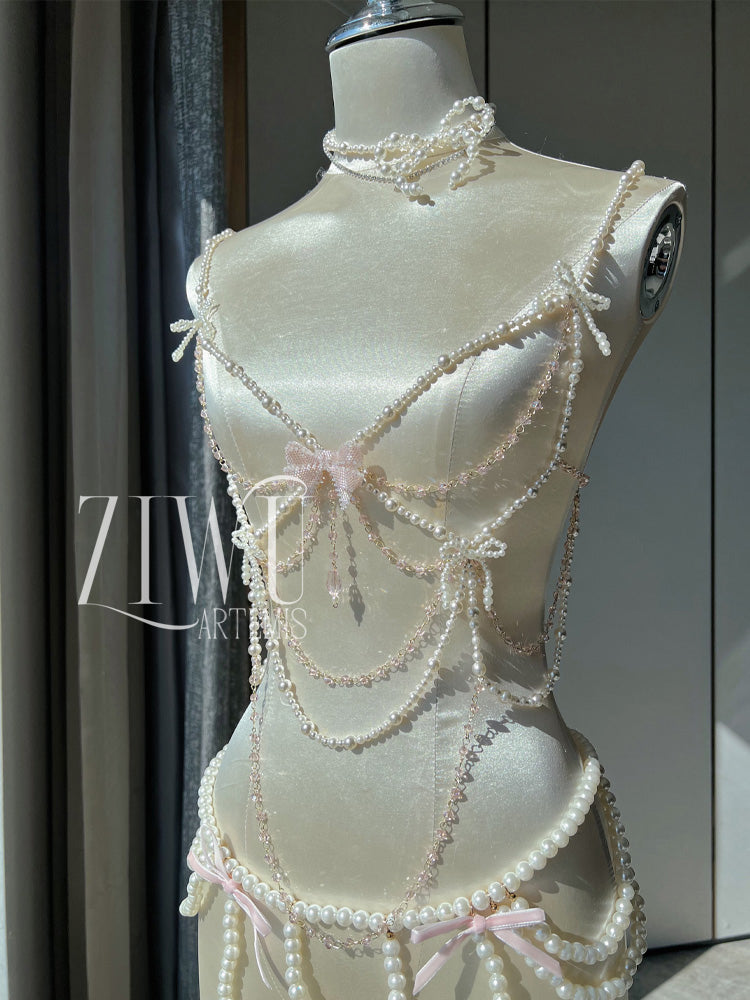 ZIWU ARTEMIS DANSEUSE WHOLE-BODY PEARL BOW DIAMOND CHAIN CORSET BRA TOP COSTUME PATENT-PROTECTED